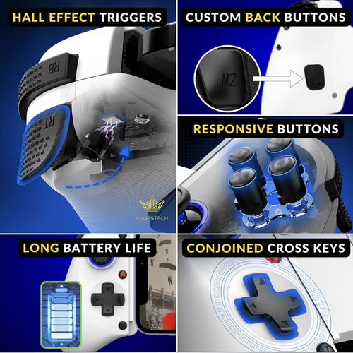 جویاستیک موبایل چندمنظوره با پشتیبانی از پلتفرمهای مختلف از جمله کامپیوتر، اندروید، iOS و نینتندو سوییچ، تجربهای دقیق و روان در بازیهای موبایلی و ابری ارائه میدهد. تریگرهای Hall افکتی با قابلیت تشخیص 256 سطح فشار، دکمههای قابل برنامهریزی، جویاستیک سهبعدی دقیق و لرزش دوگانه داخلی، این کنترلر را به گزینهای حرفهای برای گیمرها تبدیل کرده است. طراحی ارگونومیک و واکنش سریع دکمهها، کنترل بهتر و حس واقعیتری از بازی را تضمین میکند. مجهز به تریگرهای Hall افکتی با تشخیص 256 سطح فشار برای کنترل دقیقتر. جویاستیک سهبعدی، حرکت روان در بازیهای رقابتی را فراهم میکند. دو دکمه قابل برنامهریزی M1 و M2، امکان اجرای عملکردهای ترکیبی را با یک کلیک میدهند. دکمههای اصلی با طراحی دقیق و سیلیکون ارتجاعی، پاسخدهی سریع دارند. D-Pad یکپارچه کنترل آسانتری ارائه میدهد و لرزش دوگانه داخلی، تجربهای واقعی و هیجانانگیز از بازی را ایجاد میکند.